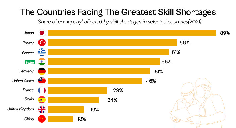India is the 4th largest country facing skill shortage at a whopping 56%. Top companies are hence considering India as the largest hub for BVoc Institutes because they are more focused towards building skill oriented manforce and resources.